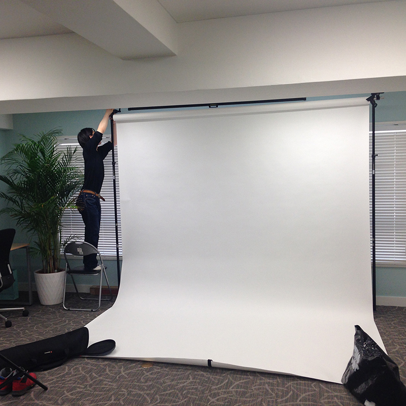 会議室や倉庫のようなスペースで、本格的なスタジオ撮影が可能です。